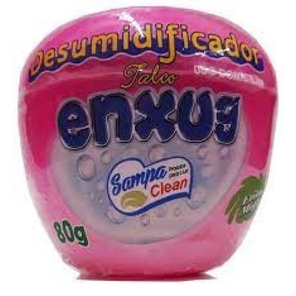 O Desumidificador Enxug Sampa Clean Talco é um “evita mofo” com suave e agradável perfume, que age eliminando a umidade e evitando problemas de odores em guarda-roupas, gavetas, gabinetes de pia, bibliotecas, salas fechadas, equipamentos fotográficos, etc. Ele absorve a umidade do ambiente e a água fica armazenada no pote.